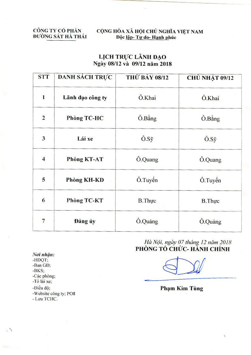 Lịch trực lãnh đạo Công ty ngày 08 và 09 tháng 12 năm 2018 Ngày đăng: 07/12/2018 - 14:58 Chia sẻ: | In bài viết