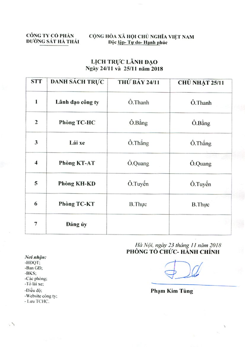 Lịch trực lãnh đạo Công ty ngày 24 và 25/11/2018 Ngày đăng: 23/11/2018 - 14:06 Chia sẻ: | In bài viết