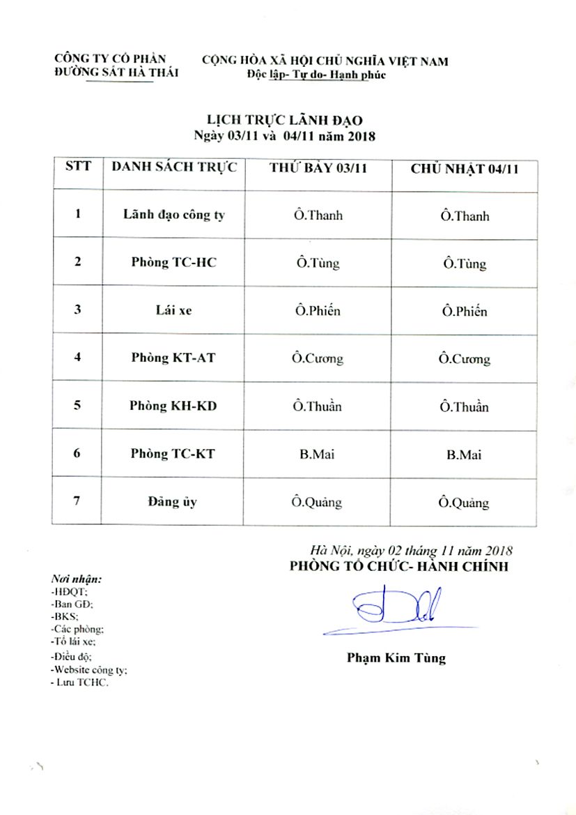 Lịch trực lãnh đạo Công ty ngày 03 và 04/11/2018 Ngày đăng: 02/11/2018 - 08:32 Chia sẻ: | In bài viết