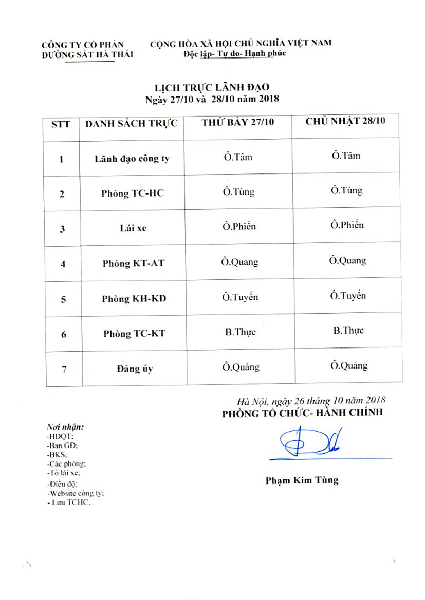 Linh trực lãnh đạo Công ty ngày 27 và 28/10/2018 Ngày đăng: 26/10/2018 - 08:23 Chia sẻ: | In bài viết