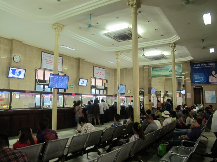 Hành khách mua vé tàu Tết tại Ga Hà Nội.