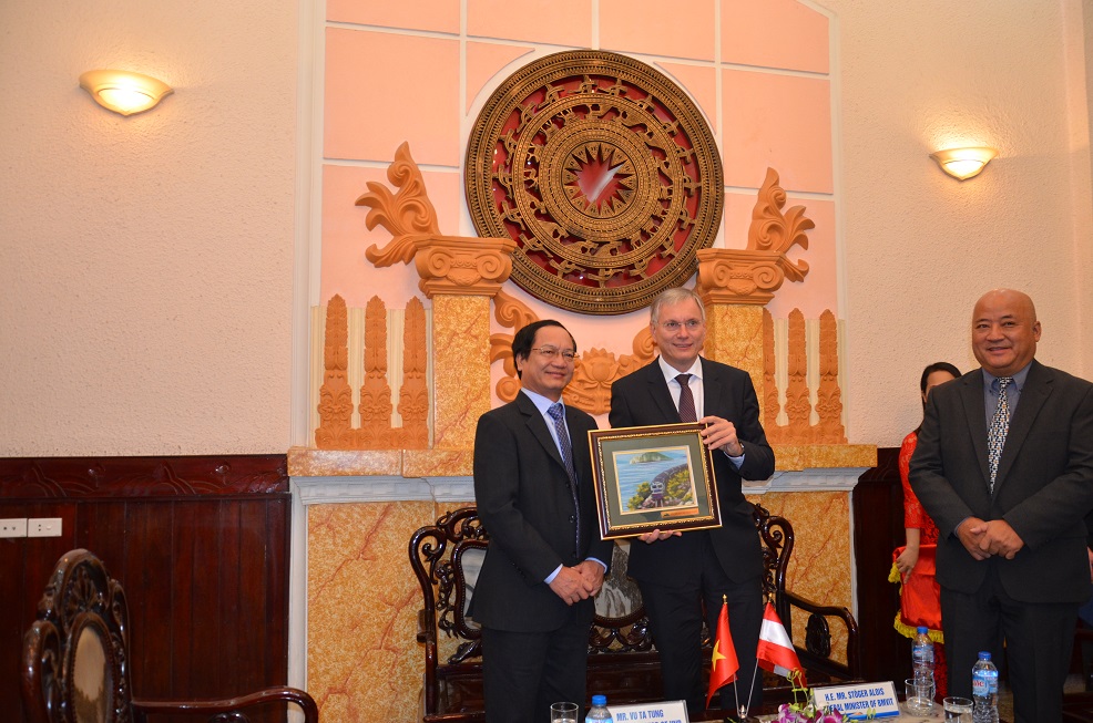Tổng giám đốc Vũ Tá Tùng tặng quà Bộ trưởng Bộ Giao thông, Sáng chế và Công nghệ CHLB Áo