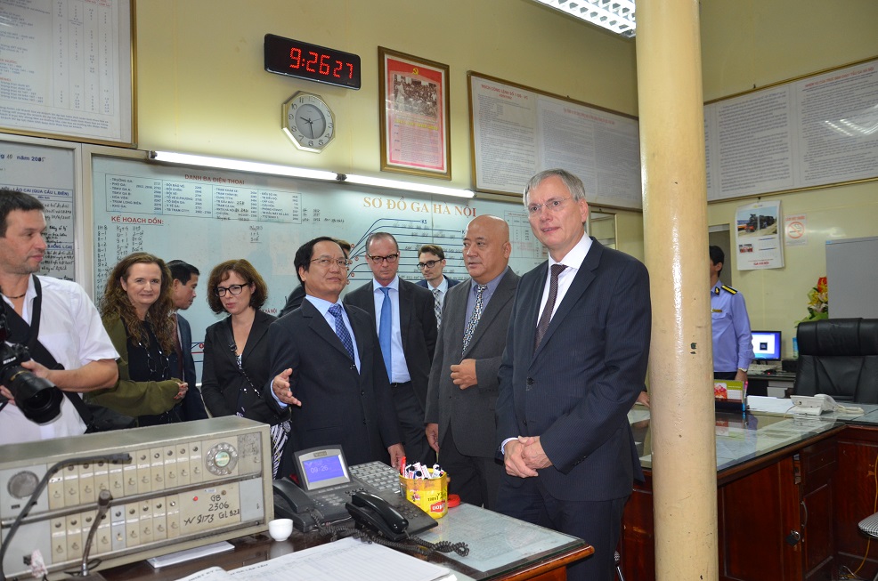 Bộ trưởng Bộ Giao thông, Sáng chế và Công nghệ CHLB Áo thăm quan phòng điều hành chạy tàu Ga Hà Nội