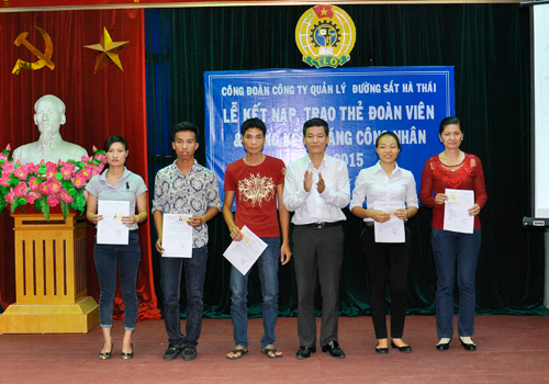 Nằm trong khuôn khổ các hoạt động chào mừng thành Công Đại hội thi đua yêu nước Tổng Công ty ĐSVN lần thứ IV, Đại hội Đại biểu Đảng bộ Công ty QLĐS Hà Thái lần thứ VI tiến tới Đại hội Đại biểu Đảng bộ Tổng công ty ĐSVN lần thứ XI, Đại hội Đảng toàn quốc lần thứ XII, 70 năm ngày thành lập Công đoàn ĐSVN (25/2/1946-25/2/2016) và tháng Công nhân năm 2015. Ngày 28/5/2015 được sự đồng ý của Công đoàn ĐSVN, Đảng ủy, lãnh đạo Công ty QLĐS Hà Thái. Công đoàn Công ty QLĐS Hà Thái long trọng tổ chức buổi Lễ kết nạp, trao thẻ đoàn viên Công đoàn và tổng kết tháng Công nhân năm 2015. Đến dự và chỉ đạo buổi lễ có đồng chí Quách Trọng Hoàn, UVBTV, trưởng ban tổ chức, đồng chí Lê Đức Dương UVBTV, UVUBKT Công đoàn ĐSVN, cùng các đồng chí đại diện cho các Ban của Công đoàn ĐSVN. Về phía lãnh đạo Công ty có đồng chí: Nguyễn Bá Thực BTĐU, Chủ tịch, Giám đốc Công ty, các đồng chí trong Ban TVĐU, ban Giám đốc, cùng các đồng chí trong BTV Công đoàn mở rộng và đặc biệt là sự có mặt của 71 đồng chí đại diện cho 108 đồng chí Đoàn viên Công đoàn mới được kết nạp và nhận thẻ Đoàn viên Công đoàn cũng về dự đông đủ. Buổi lễ diễn ra long trọng, trang nghiêm. Phát biểu ý kiến chỉ đạo tại buổi lễ đồng chí Quách Trọng Hoàn UVBTV, trưởng ban tổ chức CĐ ĐSVN biểu dương các thành tích mà Công đoàn Công ty QLĐS Hà Thái đã đạt được trong nhiều năm qua, đồng thời tin tưởng lớp đoàn viên Công đoàn mới sẽ tiếp nối truyền thống mà lớp cha anh đã gây dựng. Cũng tại buổi lễ này đại diện cho các Đoàn viên Công đoàn mới được kết nạp và nhận thẻ, Đoàn viên trẻ Nguyễn Diệu Linh phát biểu cảm tưởng, đồng thời nêu lên mục đích, ý nghĩa và niềm tự hào khi được đứng trong hàng ngũ đoàn viên Công đoàn VN. Cũng tại buổi lễ này đồng chí Nguyễn Đức Tuấn UVBTVĐU, chủ tịch Công đoàn Công ty thay mặt cho BCH báo cáo kết quả hoạt động tháng Công nhân năm 2015; báo cáo đã nêu nổi bật các thành tích, hoạt động của các tổ chức quần chúng chào mừng các ngày lễ lớn của đất nước, của ngành và của Công ty, đồng thời chỉ ra những hạn chế tồn tại cần khắc phục trong việc tổ chức các hoạt động. Buổi lễ đã kết thúc tốt đẹp, với nhiều sự kỳ vọng đặt vào lứa đoàn viên Công đoàn mới, có thể nói đây là một hoạt động đầy ý nghĩa, và sẽ được Công đoàn Công ty QLĐS Hà Thái triển khai nhân rộng trong thời gian tới.