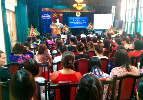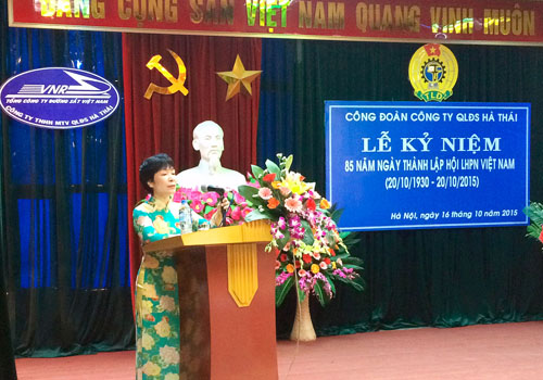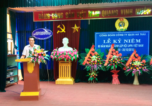 Sáng ngày 16/10/2015, tại Hội trường Công ty TNHH Một thành viên QLĐS Hà Thái, Ban Chấp hành Công đoàn phối hợp với chuyên môn Công ty đã tổ chức trọng thể Lễ mít tinh kỷ niệm 85 năm ngày thành lập hội Liên hiệp phụ nữ Việt Nam kết hợp tổ chức tuyên truyền về văn hóa Doanh Nghiệp và công tác bình đẳng giới cho nữ CBCNVC trong công ty.
