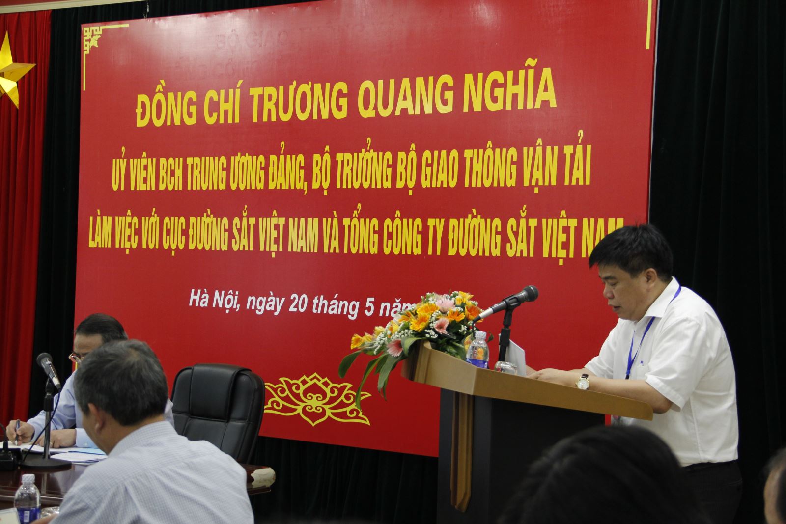 Cục trưởng Cục ĐSVN Vũ Quang Khôi báo cáo tại buổi làm việc.