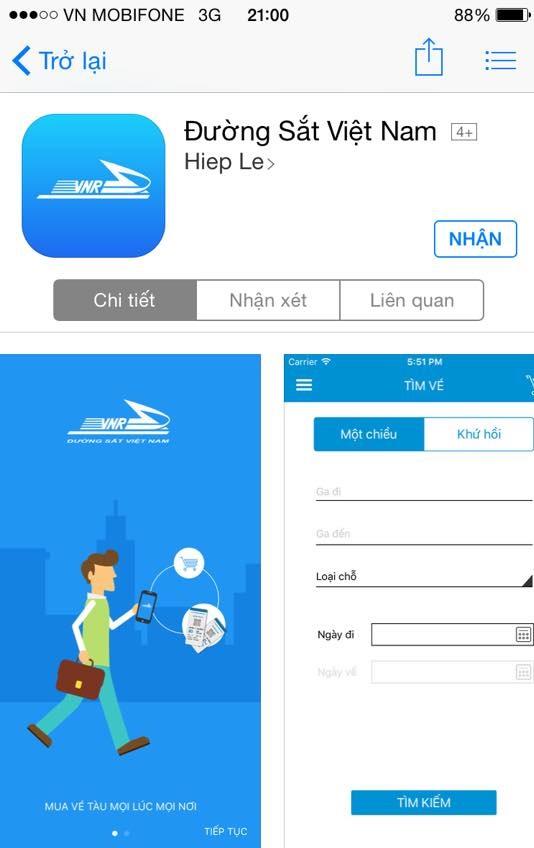 Để đặt vé, khách hàng truy cập ứng dụng và thực hiện các thao tác tương tự như khi đặt vé trên website www.dsvn.vn. Sau khi đặt vé thành công, khách hàng thanh toán tại các điểm bưu điện, các điểm ngân hàng VIB và các ga chính trên cả nước với mã thanh toán được cung cấp.
