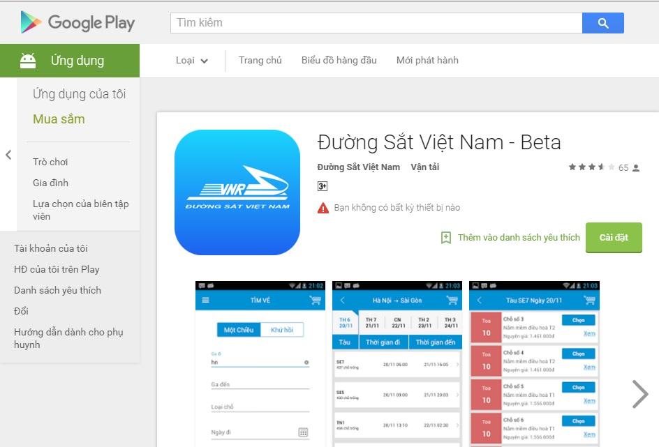 Giao diện ứng dụng trên Google Play
