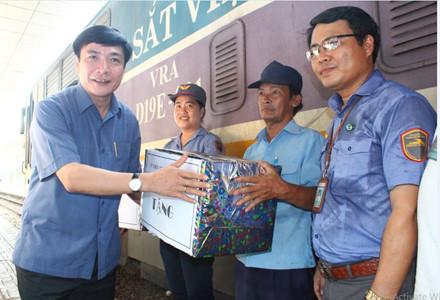 Ông Bùi Văn Cường tặng quà cho CBNV ngành đường sắt tại ga Biên Hòa