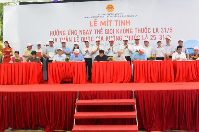 Lãnh đạo Bộ GTVT chứng kiến các đơn vị ký cam kết thực hiện nghiêm Luật phòng chống tác hại của thuốc lá