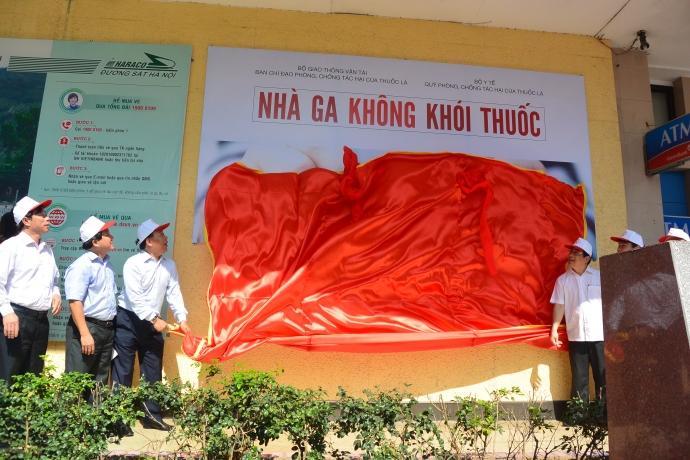 Lãnh đạo Bộ GTVT và Tổng công ty ĐSVN gắn biển Nhà ga không khói thuốc tại ga Hà Nội