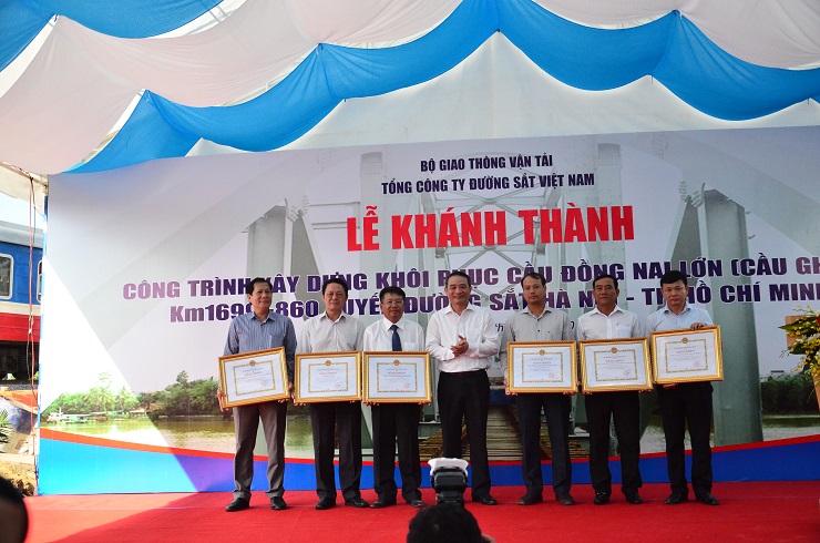 Nhân dịp này, Bộ GTVT, Tổng Liên đoàn LĐVN, UBND tỉnh Đồng Nai, Tổng công ty ĐSVN, Công đoàn ĐSVN đã tặng bằng khen cho các tập thể, cá nhân đã có thành tích tốt trong công tác thi công xây dựng cầu Ghềnh, góp phần hoàn thành công trình vượt tiến độ 20 ngày so với kế hoạch.