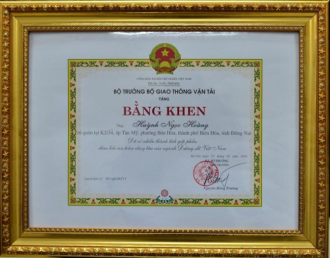 Bộ GTVT tặng bằng khen cho ông Huỳnh Ngọc Hoàng