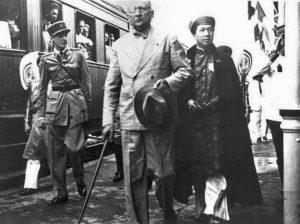 Quan toàn quyền Réne Robin và Hoàng đế Bảo Đại tại buổi lễ kết nối đường sắt xuyên Đông Dương 2 đầu Bắc-Nam ngày 2/9/1936
