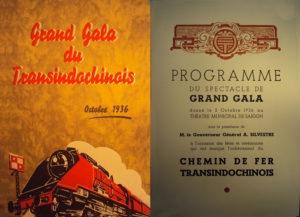 Áp phích quảng cáo sự kiện đêm Gala mừng đường sắt xuyên Đông Dương vào tháng 9/1936, địa điểm tại Nhà hát lớn Sài Gòn, nay là Nhà hát TP HCM