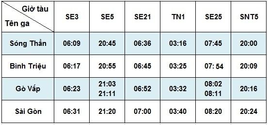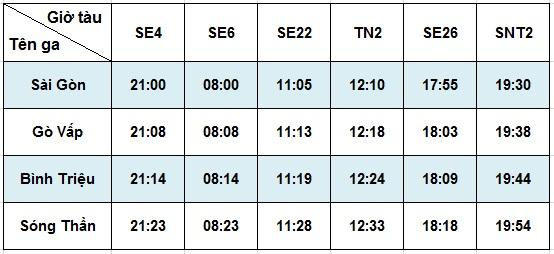 Từ ngày 01/4/2016 – 20/5/2016, thay đổi giờ tàu khu đoạn Sóng Thần – Sài Gòn và ngược lại. Cụ thể như sau: