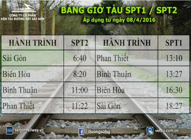 Theo đó, hàng ngày, tàu xuất phát từ ga Sài Gòn lúc 6 giờ 40, đến ga Phan Thiết lúc 11 giờ 22; chiều về sẽ xuất phát từ ga Phan Thiết lúc 13 giờ 10 đến ga Sài Gòn lúc 18 giờ 27.