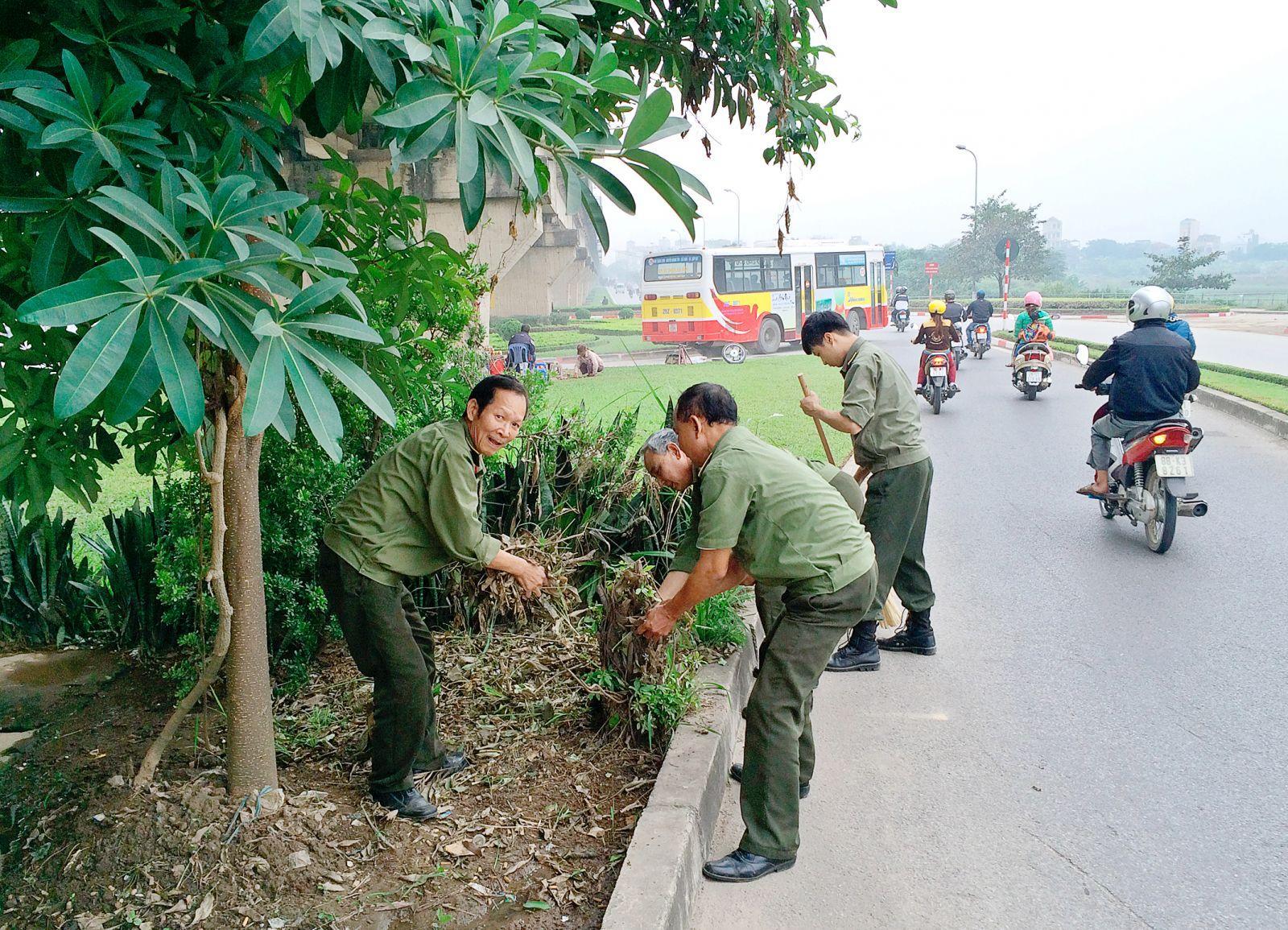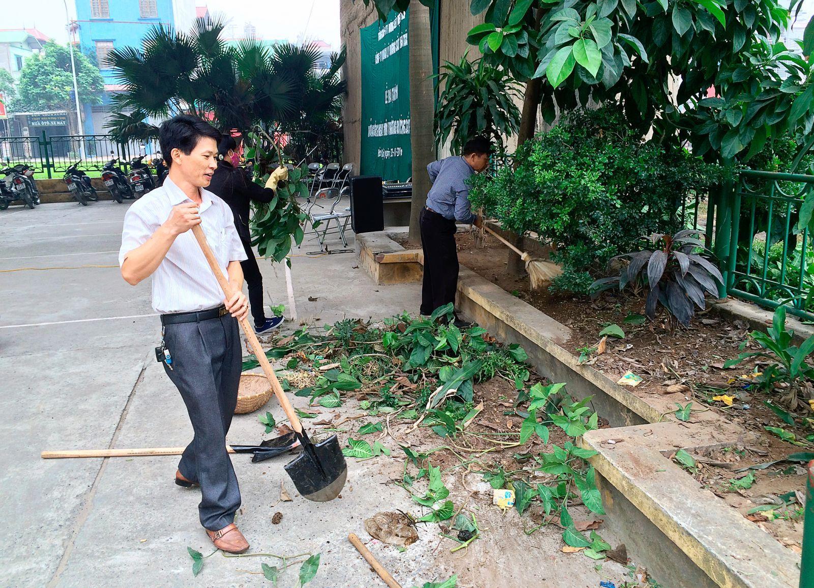 Cán bộ công nhân viên tham gia dọn vệ sinh môi trường: