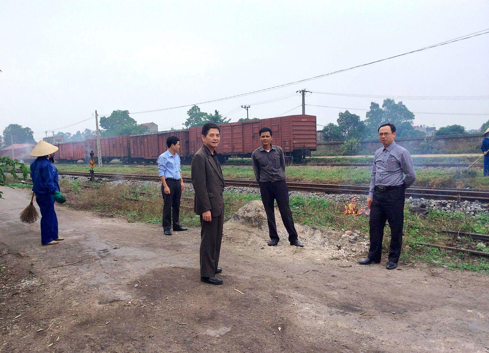 Lãnh đạo Công ty kiểm tra công tác làm vệ sinh trên tuyến đường sắt Đông Anh - Quán Triều