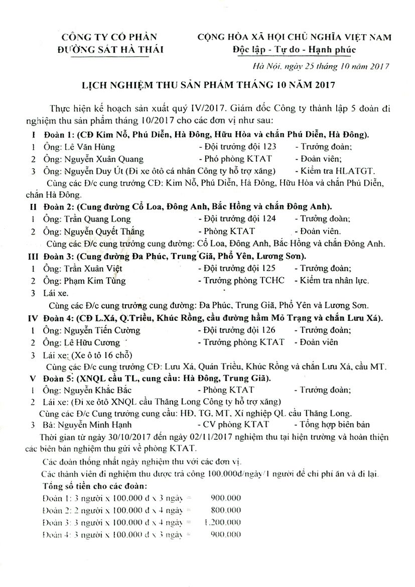Số 1117/ĐSHT-TCHC ngày 18/10/2017 của Công ty cổ phần đường sắt Hà Thái "Thông báo về việc giới thiệu chức danh và chữ ký của ông Nguyễn Đức Tuấn – Phó giám đốc Công ty cổ phần đường sắt Hà Thái"
