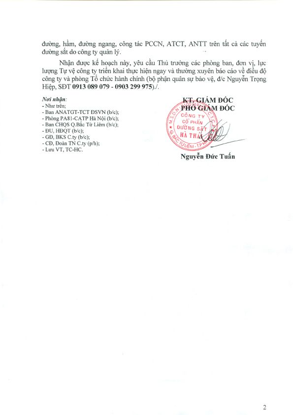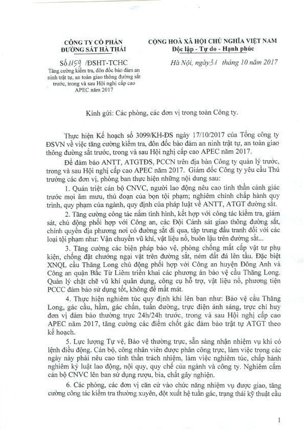 Số 1117/ĐSHT-TCHC ngày 18/10/2017 của Công ty cổ phần đường sắt Hà Thái "Thông báo về việc giới thiệu chức danh và chữ ký của ông Nguyễn Đức Tuấn – Phó giám đốc Công ty cổ phần đường sắt Hà Thái"