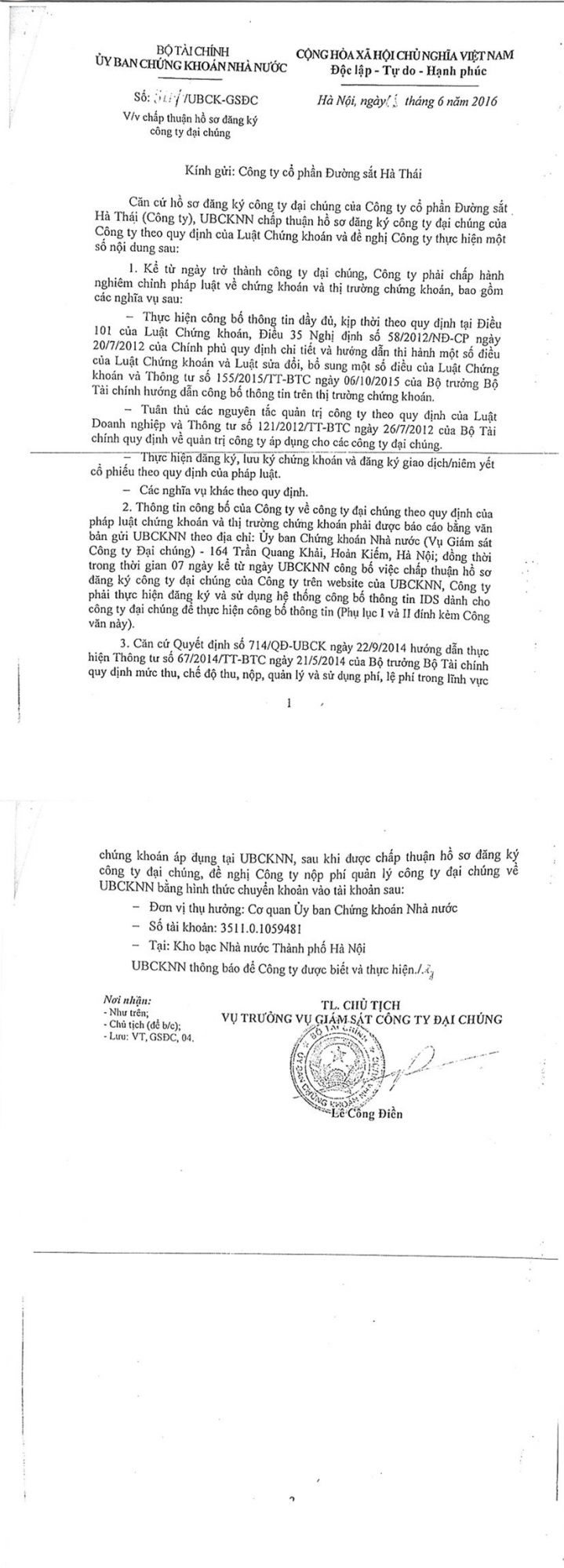 Số 511/UBCK-GSĐC ngày 05/6/2016về việc chấp thuận hồ sơ đăng ký công ty đại chúng