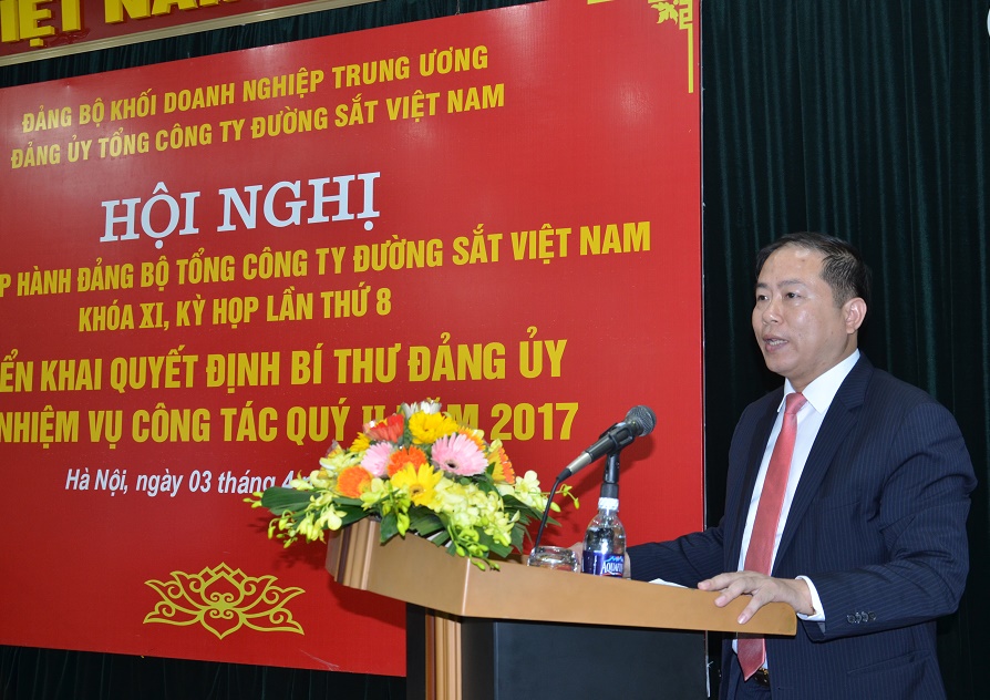 Tại buổi lễ, đồng chí Phạm Viết Thanh – Bí thư Đảng ủy Khối DNTƯ, thay mặt BTV Đảng ủy Khối DNTƯ đã trao Quyết định số 666-QĐ/ĐUK ngày 27/3/2017 của Ban Thường vụ Đảng ủy Khối DNTƯ về việc chỉ định đồng chí Vũ Anh Minh, Chủ tịch HĐTV Tổng công ty ĐSVN, tham gia Ban chấp hành, Ban thường vụ và giữ chức Bí thư Đảng ủy ĐSVN khóa XI, nhiệm kỳ 2015 - 2020. Phát biểu chúc mừng đồng chí Vũ Anh Minh được giao trọng trách Bí thư Đảng ủy ĐSVN; đồng chí Phạm Viết Thanh bày tỏ tin tưởng đồng chí Vũ Anh Minh sẽ cùng với BCH Đảng bộ ĐSVN tiếp tục phát huy tinh thần đoàn kết, sáng tạo; tập trung lãnh đạo ĐSVN không ngừng phát triển, xứng đáng với vị trí, vai trò của giao thông vận tải ĐS trong nền kinh tế quốc gia.